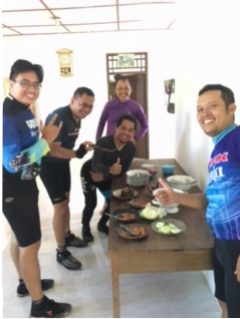Pagi tadi, kami juga sempatkan minum teh dan menikmati gorengan di salah satu rumah di dekat air terjun, yang nampaknya baru akan mulai berjualan. Bahkan tadi pagi kami minta digorengkan ikan lele yang disajikan dengan sambel bawang, daun pepaya dan nasi hangat..uenak banget….kalau minat, lain kali bisa telpon duluan agar bisa dimasakkan ibundanya mas Muhidin, No HP 081332603785 atau 087839435490.
