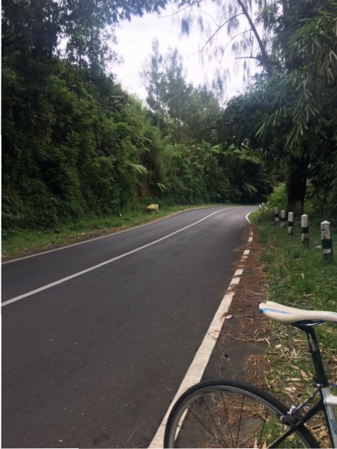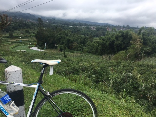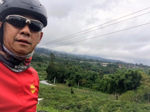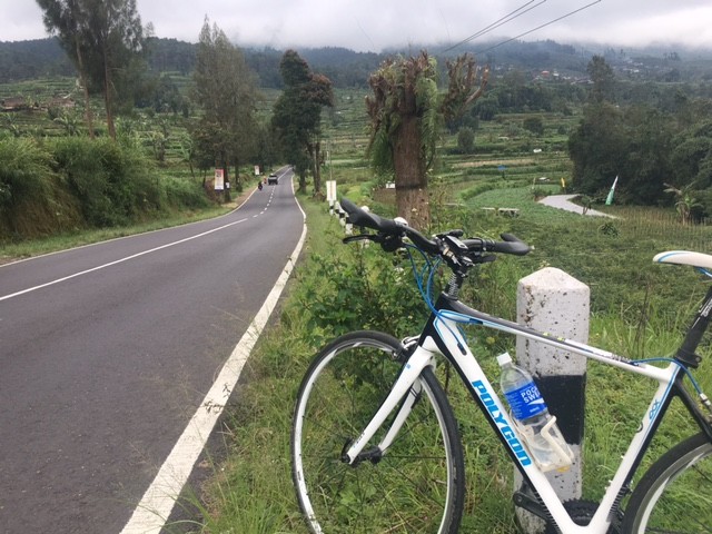 Kondisi udara sangat nyaman, kadang terasa dinginnya pegunungan dengan hamparan kebun-kebun sayuran di kiri dan kanan jalan terus mewarnai perjalanan pendakian kami. Jalan yang terus menanjak ini benar-benar mengasah kesabaran diri sendiri untuk terus tabah menikmati pendakian dengan kayuhan sesuai kekuatan masing-masing.