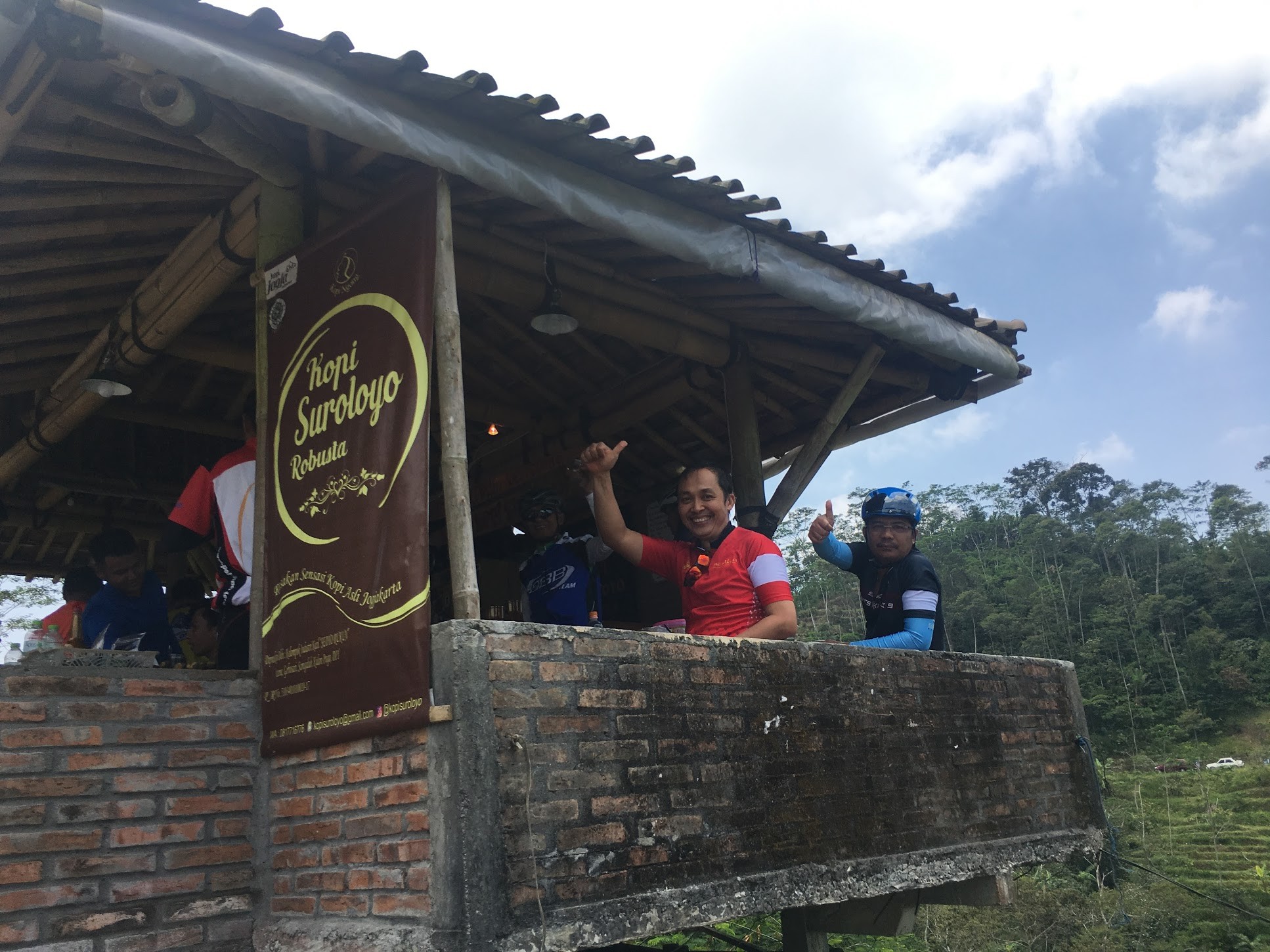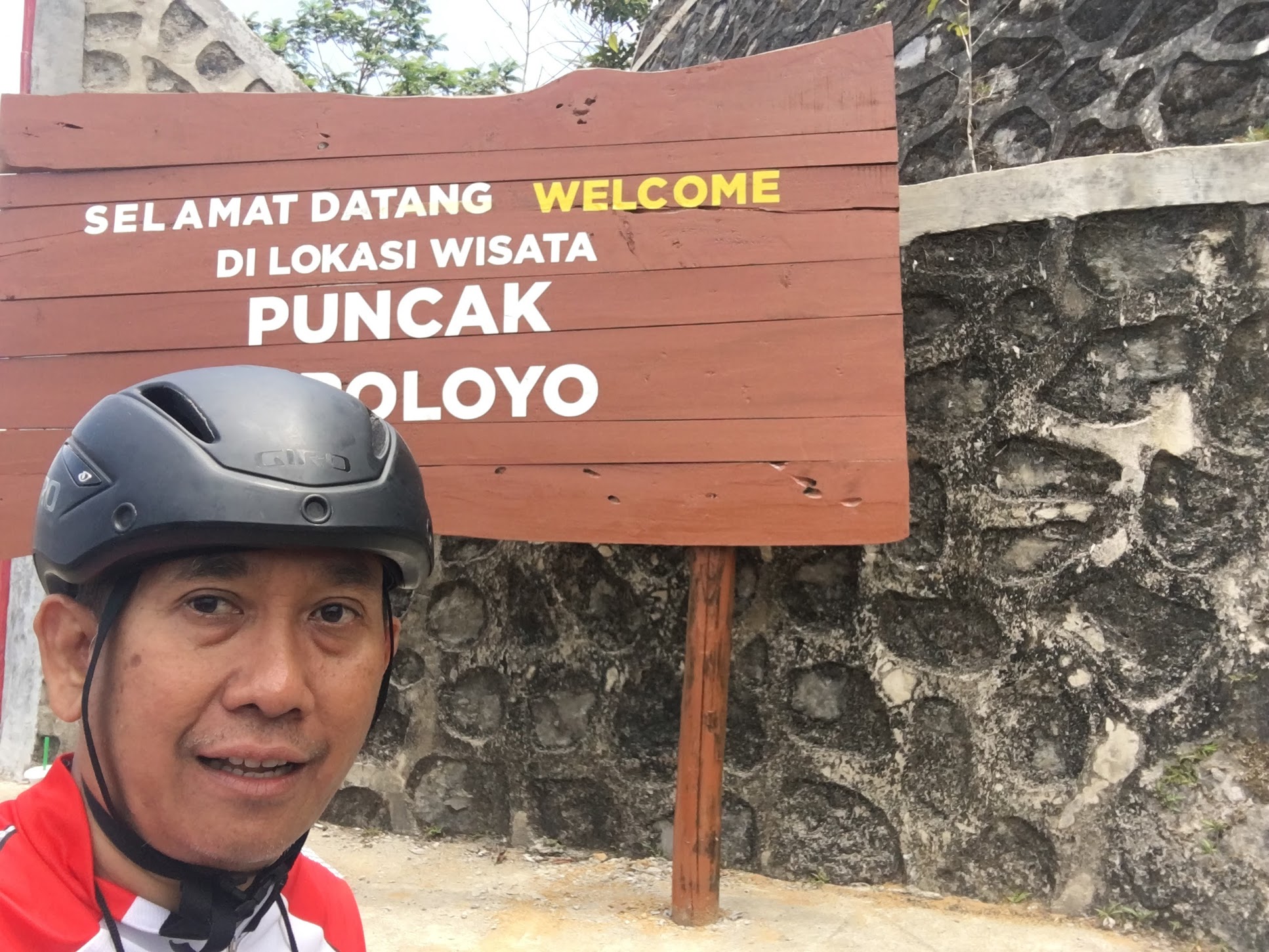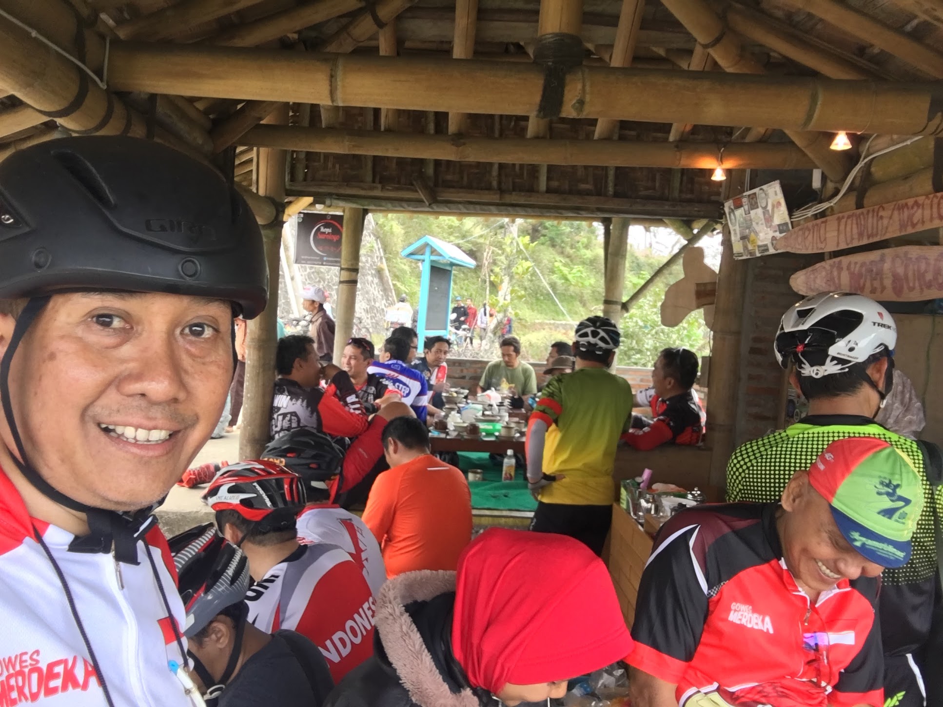 Etappe terakhir Samigaluh-Suroloyo yang berjarak 9km, dengan ritme kenyamanan kami bersepeda kami tempuh dalam waktu hampir 2 jam. Kata teman kami yang sampai duluan, selisih waktu kami tiba kami dibanding teman terdepan, lebih dari 1 jam….hehehehhe…ora popo..aku bangga bisa mencapai Suroloyo dengan waktuku sendiri. Indahnya bersepeda. Semua senang dan bangga dengan capaiannya masing-masing. Kesuksesan satu teman tidak mengurangi hak maupun jatah teman lain untuk meraih kesuksesan. Kesuksesan dalam bersepeda tersedia melimpah, tidak terbatas dan tidak perlu rebutan.