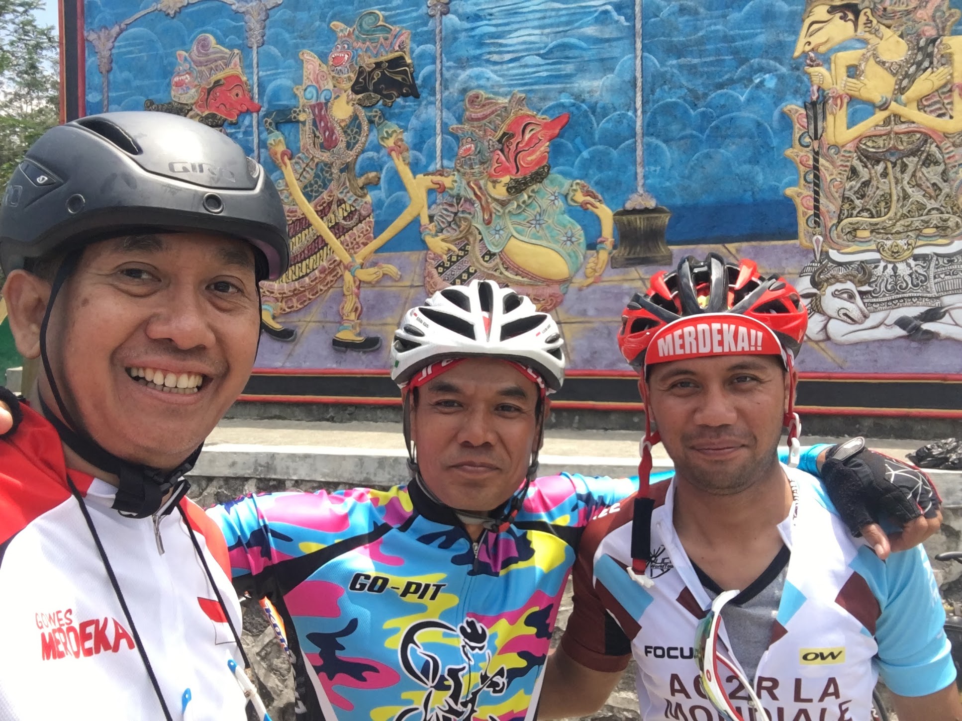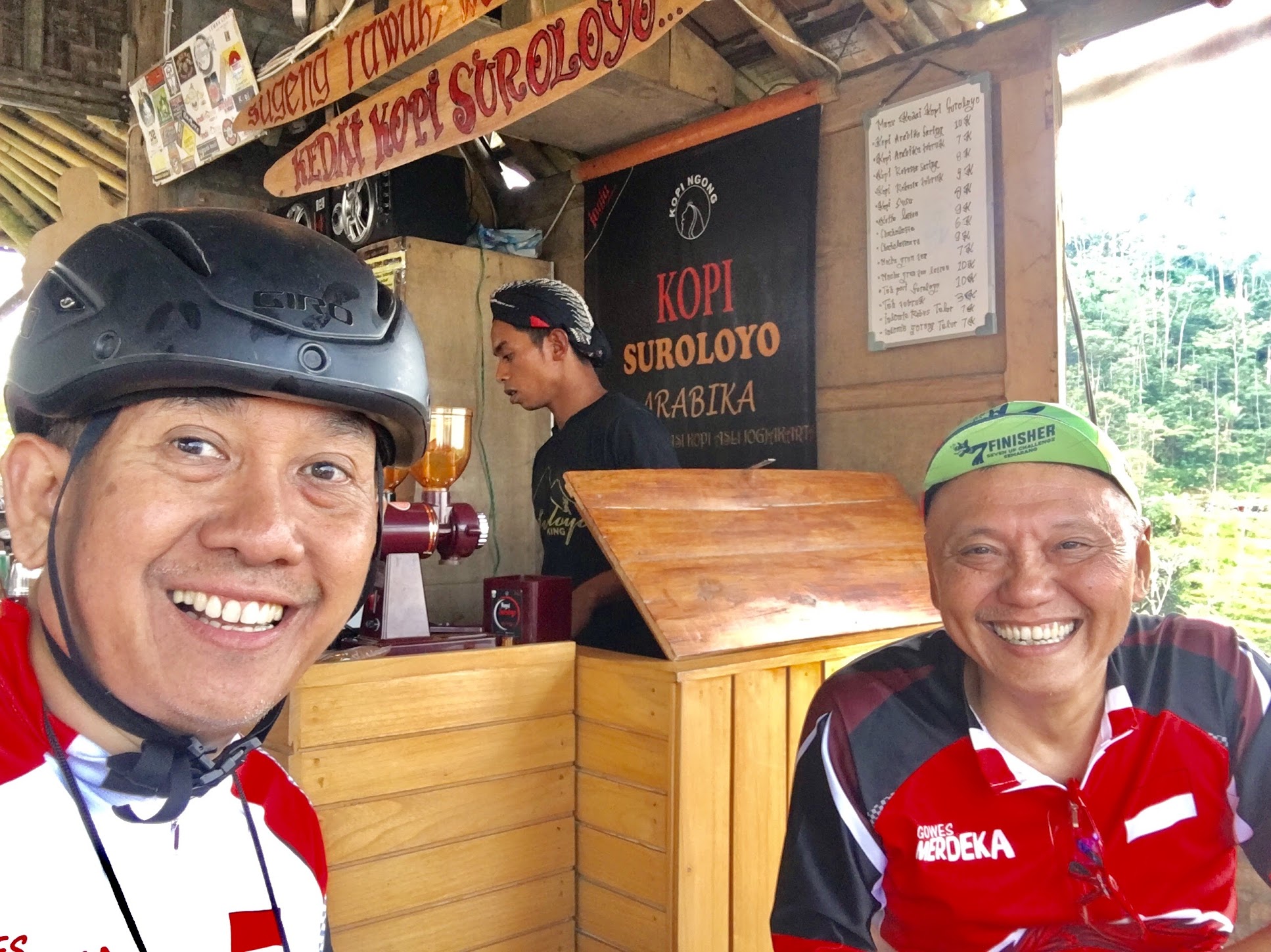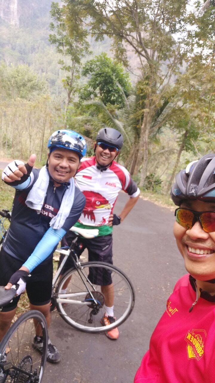 Etappe terakhir Samigaluh-Suroloyo yang berjarak 9km, dengan ritme kenyamanan kami bersepeda kami tempuh dalam waktu hampir 2 jam. Kata teman kami yang sampai duluan, selisih waktu kami tiba kami dibanding teman terdepan, lebih dari 1 jam….hehehehhe…ora popo..aku bangga bisa mencapai Suroloyo dengan waktuku sendiri. Indahnya bersepeda. Semua senang dan bangga dengan capaiannya masing-masing. Kesuksesan satu teman tidak mengurangi hak maupun jatah teman lain untuk meraih kesuksesan. Kesuksesan dalam bersepeda tersedia melimpah, tidak terbatas dan tidak perlu rebutan.