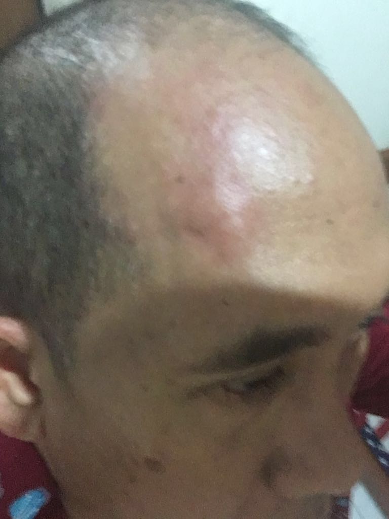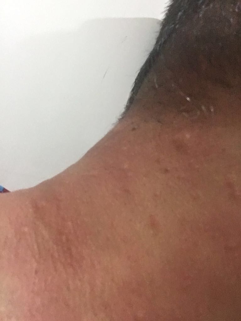 Awalnya rasa gatal-gatal di punggung, kemudian perut, leher bagian belakang, termasuk di belakang telinga, wajah dan tangan. Berlanjut muncul bentol-bentol kecil di tangan dan kaki, dan selanjutnya bentol-bentol besar di hampir sekujur tangan, kaki, punggung serta perut, dan ada satu bentol besar di dahi kanan. Itu saya alami saat bersepeda kemarin.