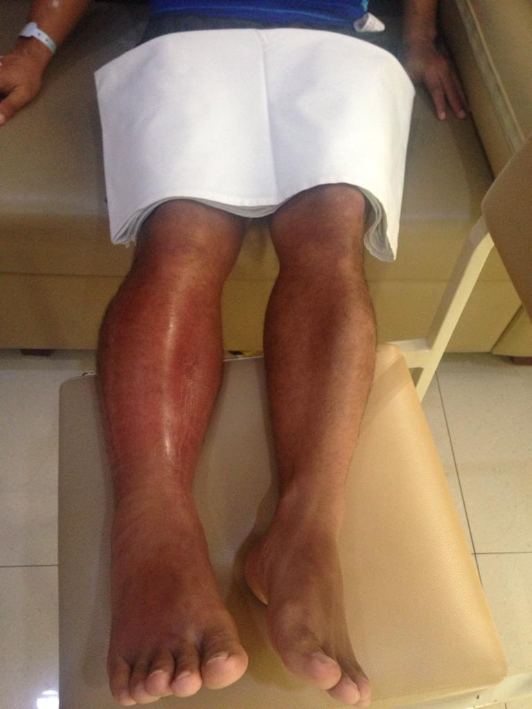 Dalam waktu kurang dari 24 jam meradang dari ujung kaki sampai pangkal paha