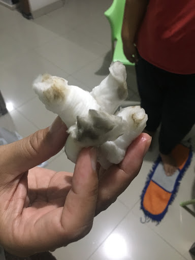 - Semua kapas penyumbat saluran antar tabung berwarna hitam kotor, terutama kapas di pipa penghubung tabung di bagian tengah